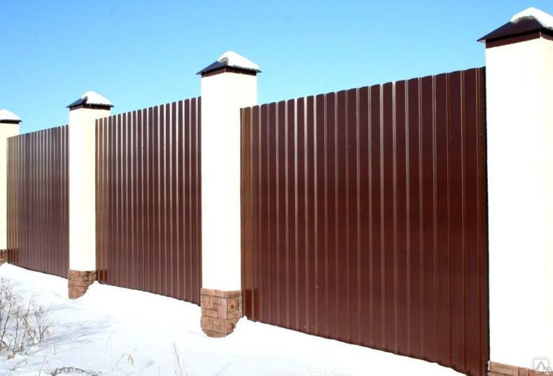 Толщина листа профнастила до одного сантиметров. Идеально подходит для ограждений любого вида.