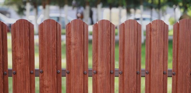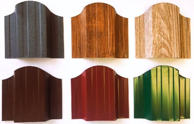 Снаружи участка, для посторонних и со двора, для жильцов, планки декоративны и радуют глаз. Остается выбрать способ нанесения тона — полимерное покрытие (яркое и защитное) или порошковое. Во втором случае оно может быть качественные: прогрунтованное, покрашенное и запеченное по специальной технологии. Есть и подделки, быстро повреждающиеся и ржавеющие. Полимерное долговечнее, но не относится к категории бюджетных.