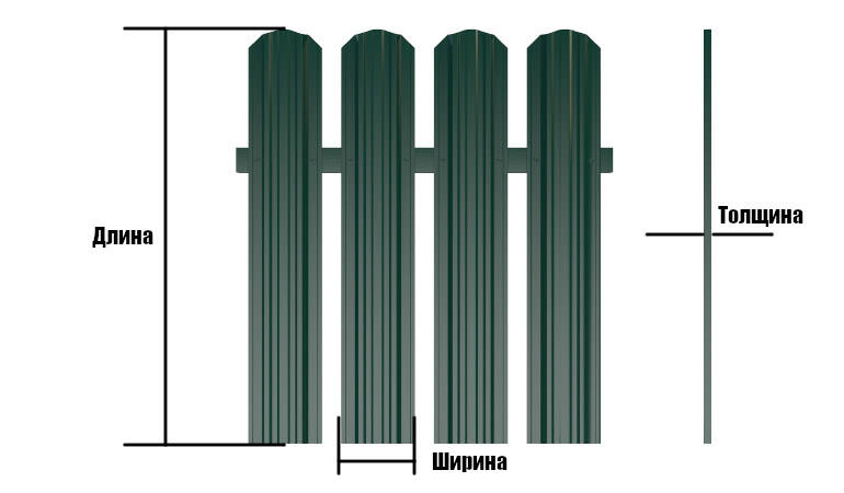 Размеры евроштакетника — важный критерий прочности, но толстый металл весит больше и стоит иногда в разы дороже.