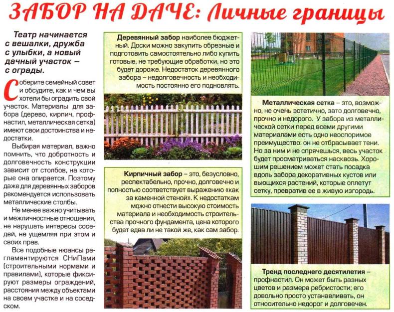 В последнее время многие владельцы земельных участков стремятся отгородиться глухим забором не только от шумной улицы, но и от соседей. Это касается не только просторных участков в поселках и деревнях, но и на территории СНТ.