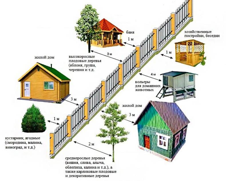 В правилах четко прописана необходимость забора между соседними участками, а также определены расстояния от конструкции до различных объектов на земельном участке.