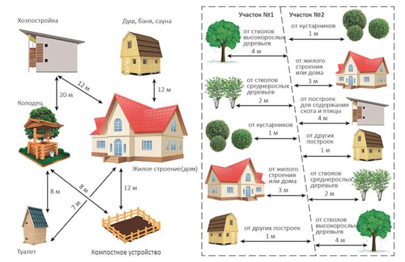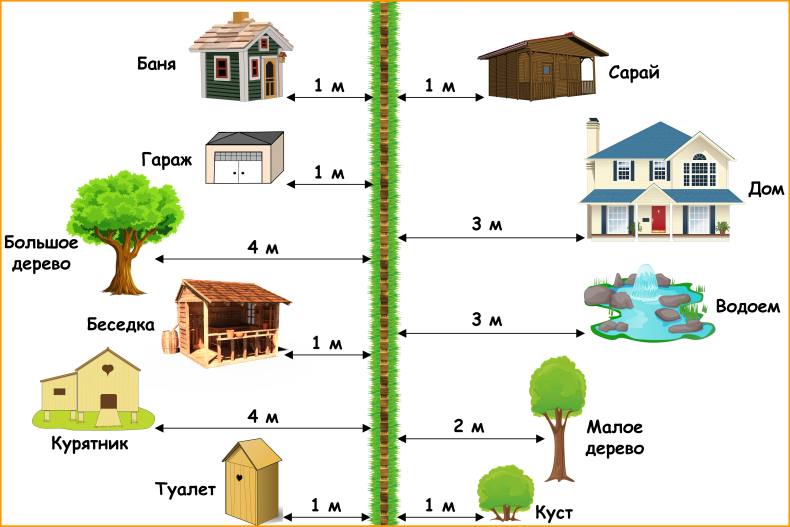 Фото на каком расстоянии строить баню от забора и дома соседей
