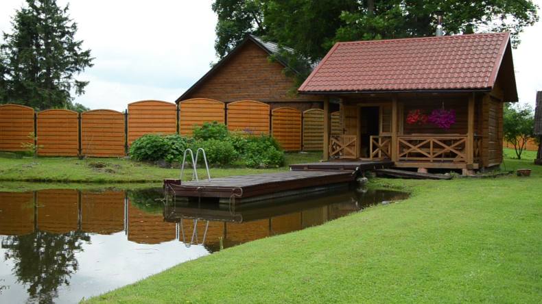 - Граница, между двумя участками является главным ориентиром. В первую очередь важно учитывать положение здания по отношению к соседнему забору. Если оно слишком близко примыкает к чужим владениям, то во избежание конфликтных ситуаций баню лучше построить более, чем за 4 м от границы с соседями;
