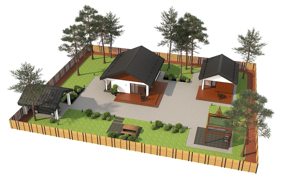 - В случае, если ограда изготовлена из деревянного массива, то банный комплекс должен располагаться не ближе 4 м.
