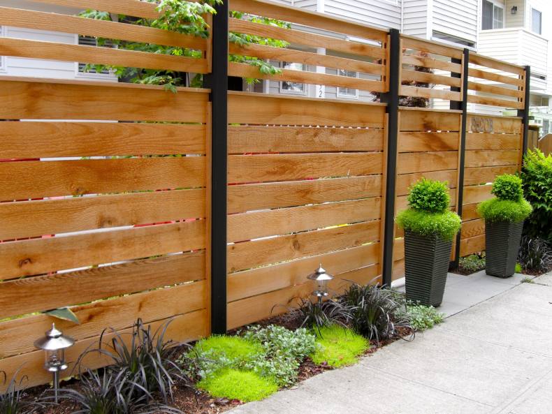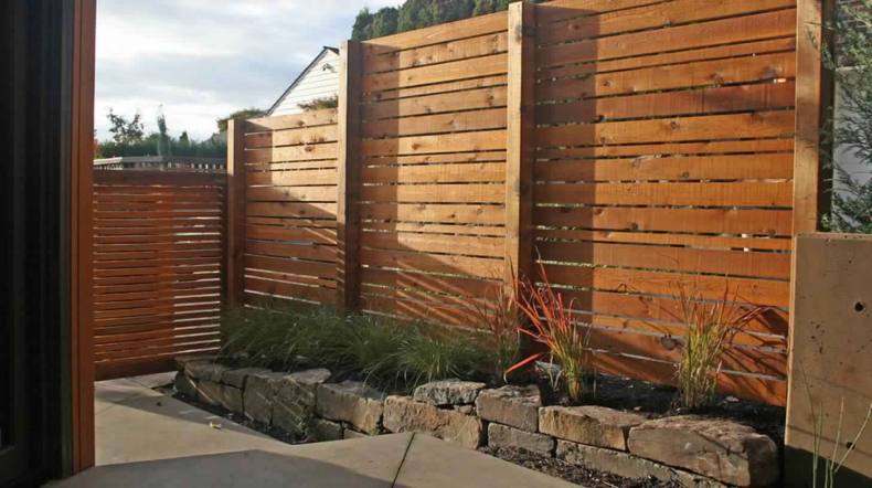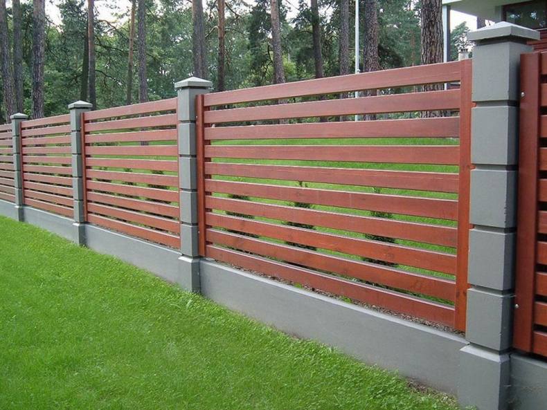 - Горизонтальное — очень редко применяется, так как через такой забор легко перелезть, а также для строительства необходимы доски одинаковой длины, что не всегда случается.
