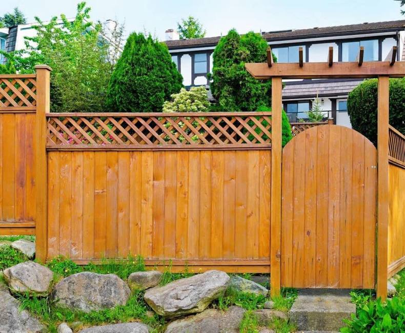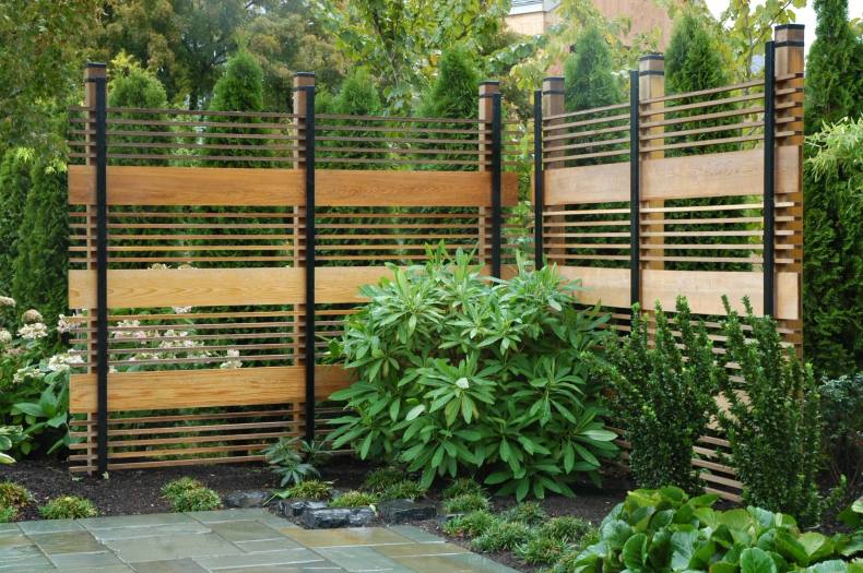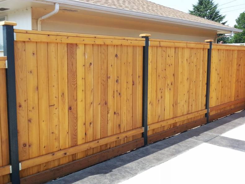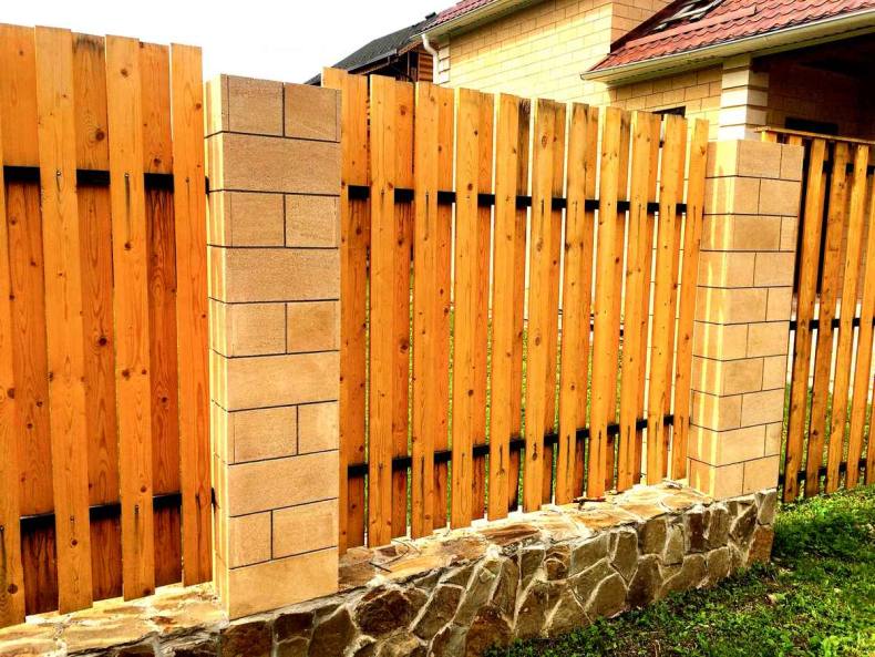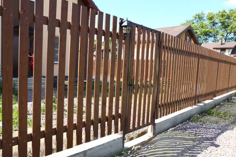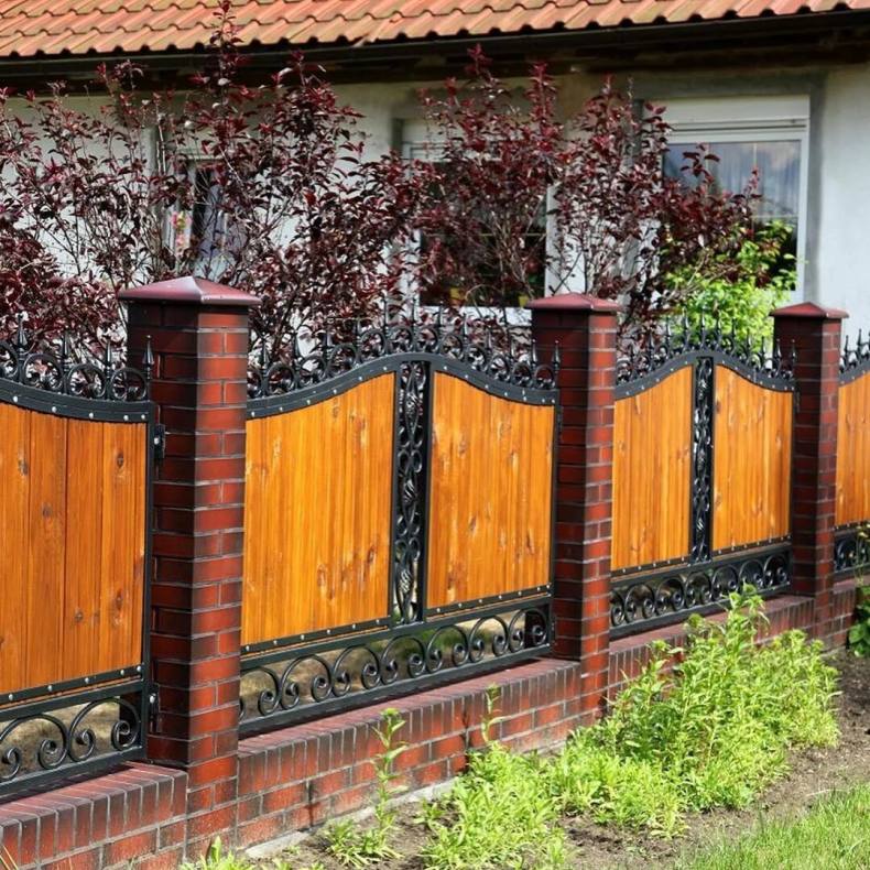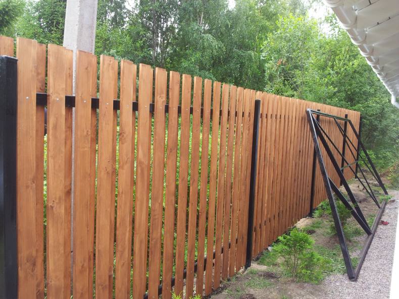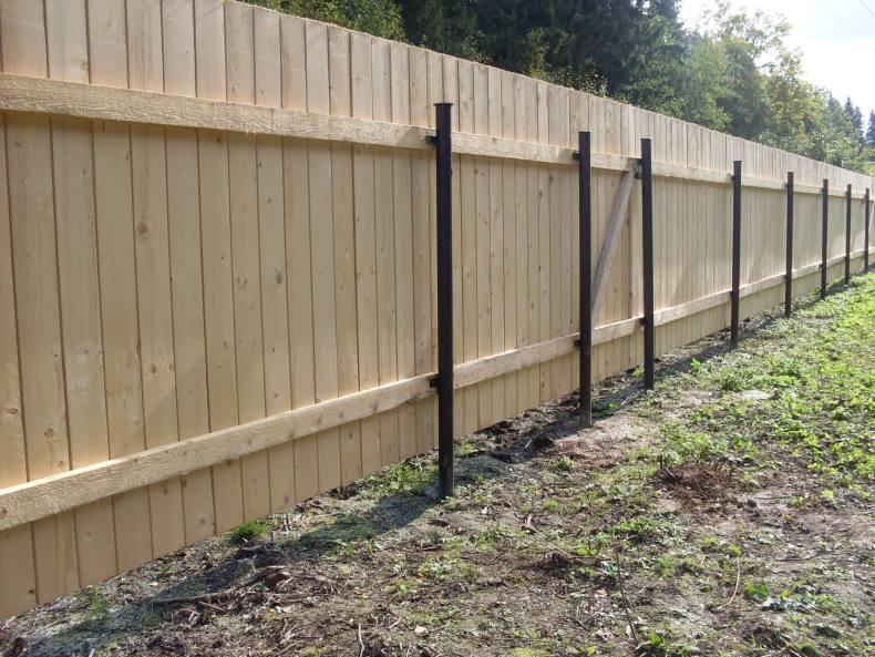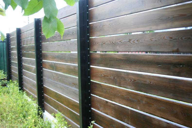 Деревянный забор на металлическом каркасе довольно-таки распространённый и практичный вариант ограждения. Такой тип забора хорошо подходит под многие дизайны и при желании его можно самостоятельно возвести.