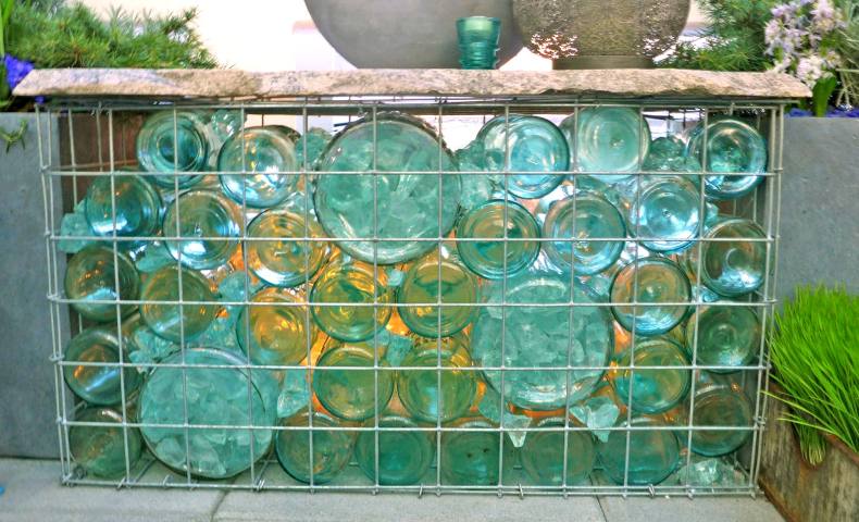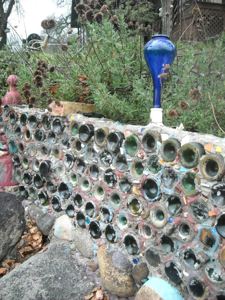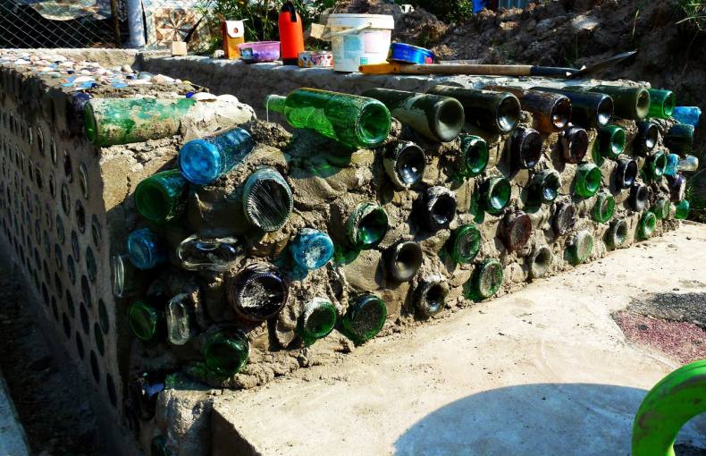 Заборы из стеклянных бутылок делаются по той же схеме.