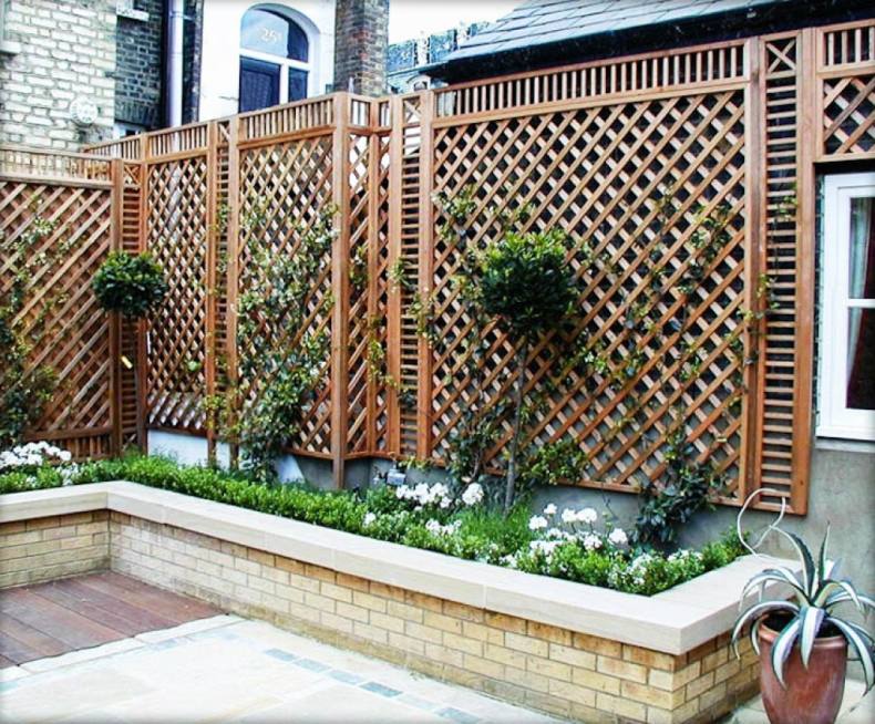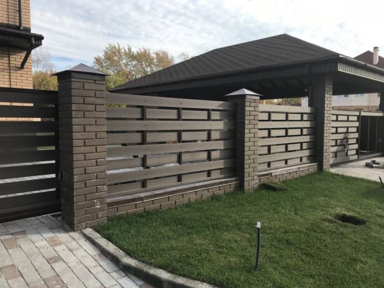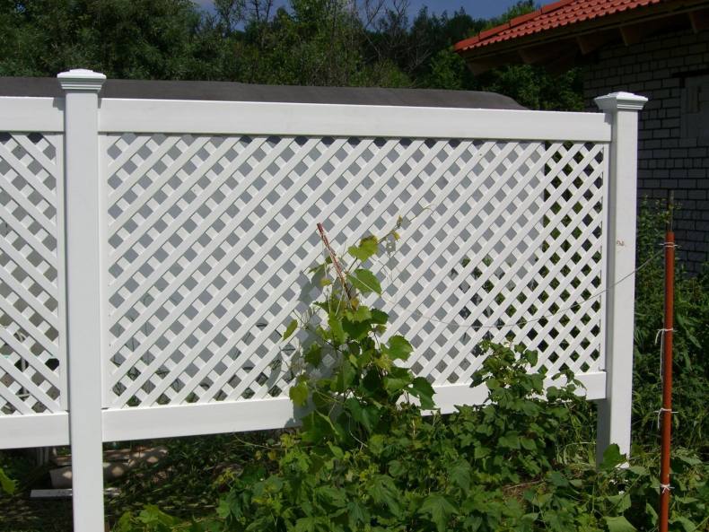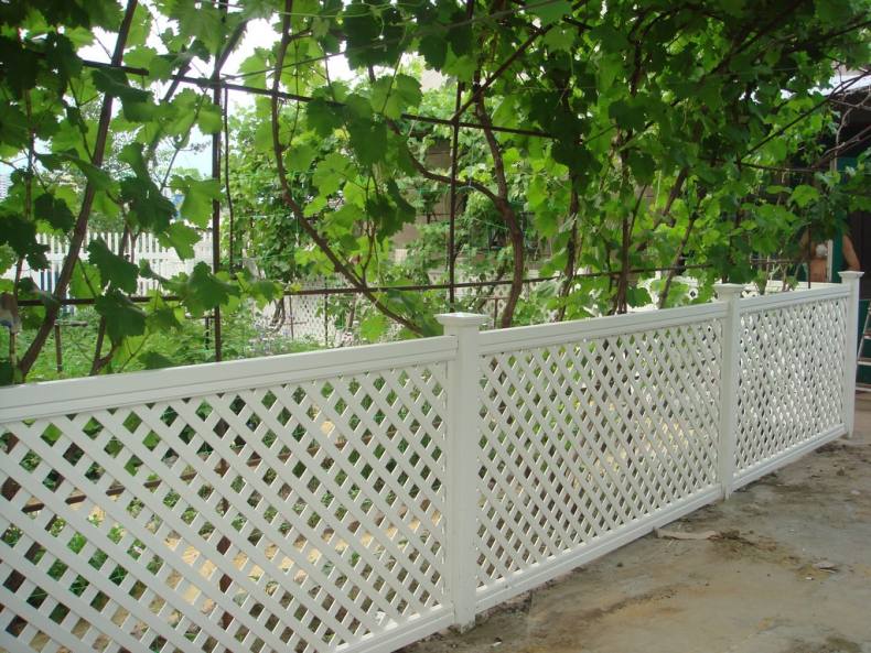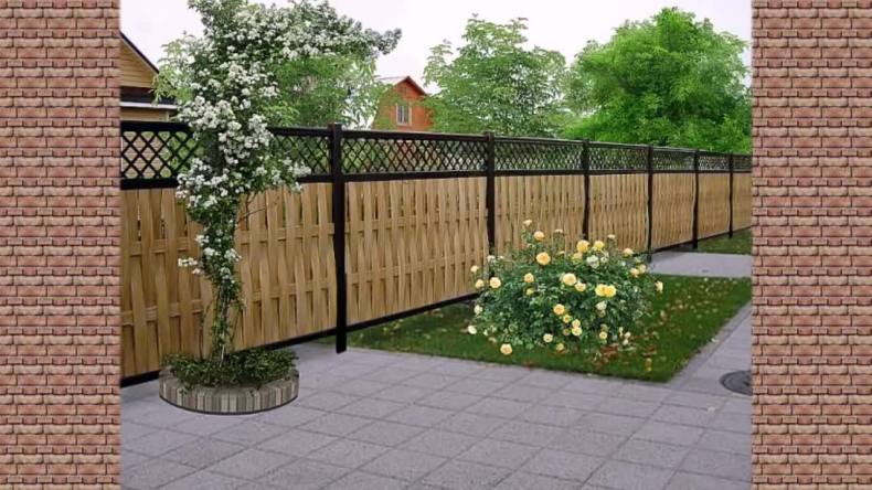 - Ограждение в виде решетки. Существуют разные модели такого вида забора. Самой популярной считается комбинированная – внизу располагается глухой забор, а сверху — решетка. Размеры секции могут быть различными.