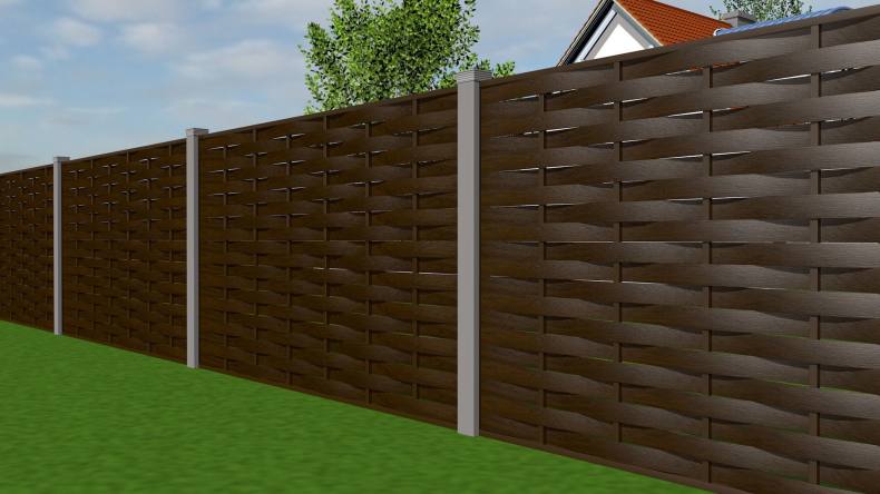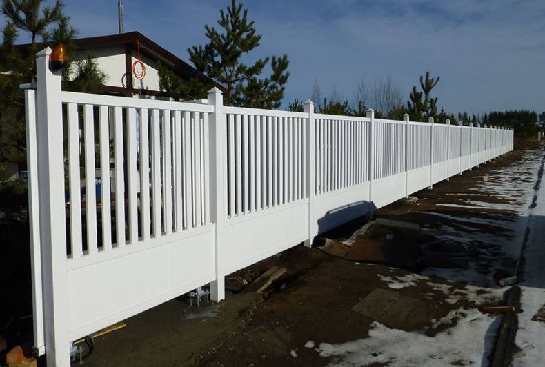 - Спокойным отношением к природно-погодным условиям. Пластик спокойно выдержит солнечный свет и жару, дождь и понижение температуры. Правда, порывы сильного ветра могут сломать слишком тонкие перекладины, поэтому высокие заборы усиливают с помощью специальных полимеров. Но стоят такие изделия несколько дороже.