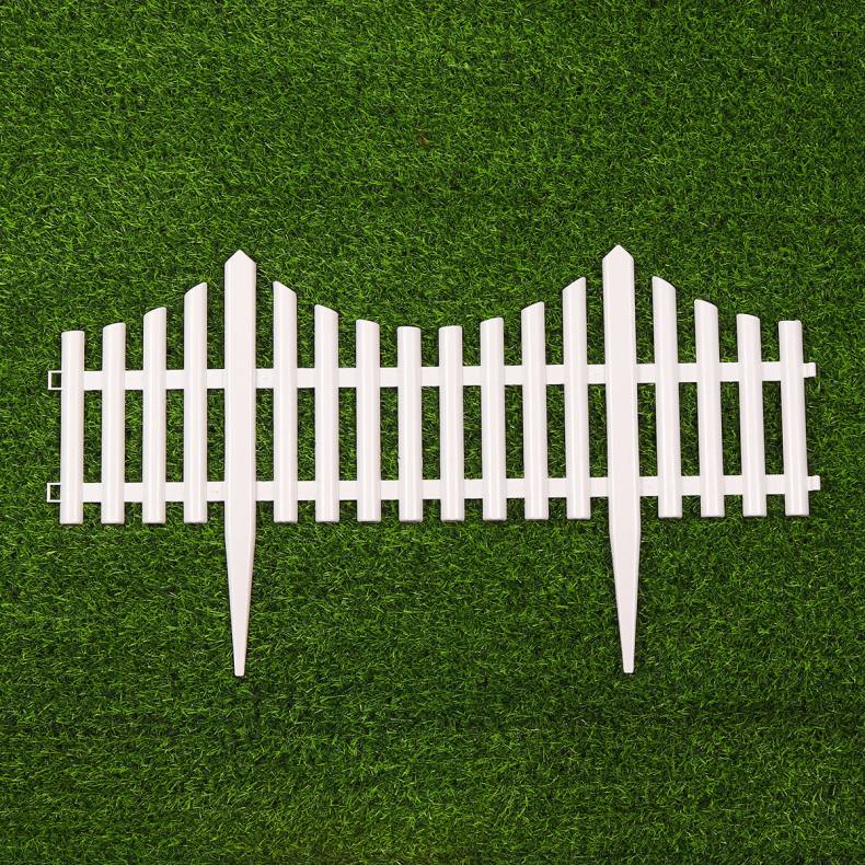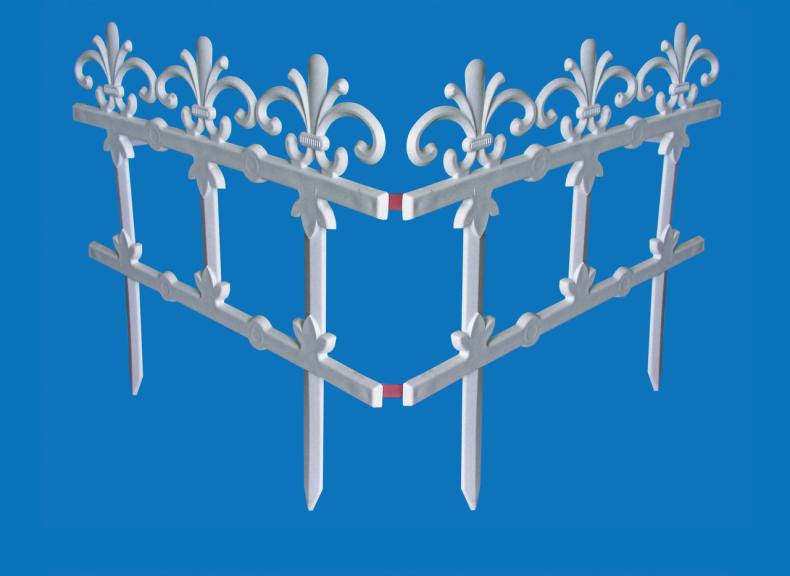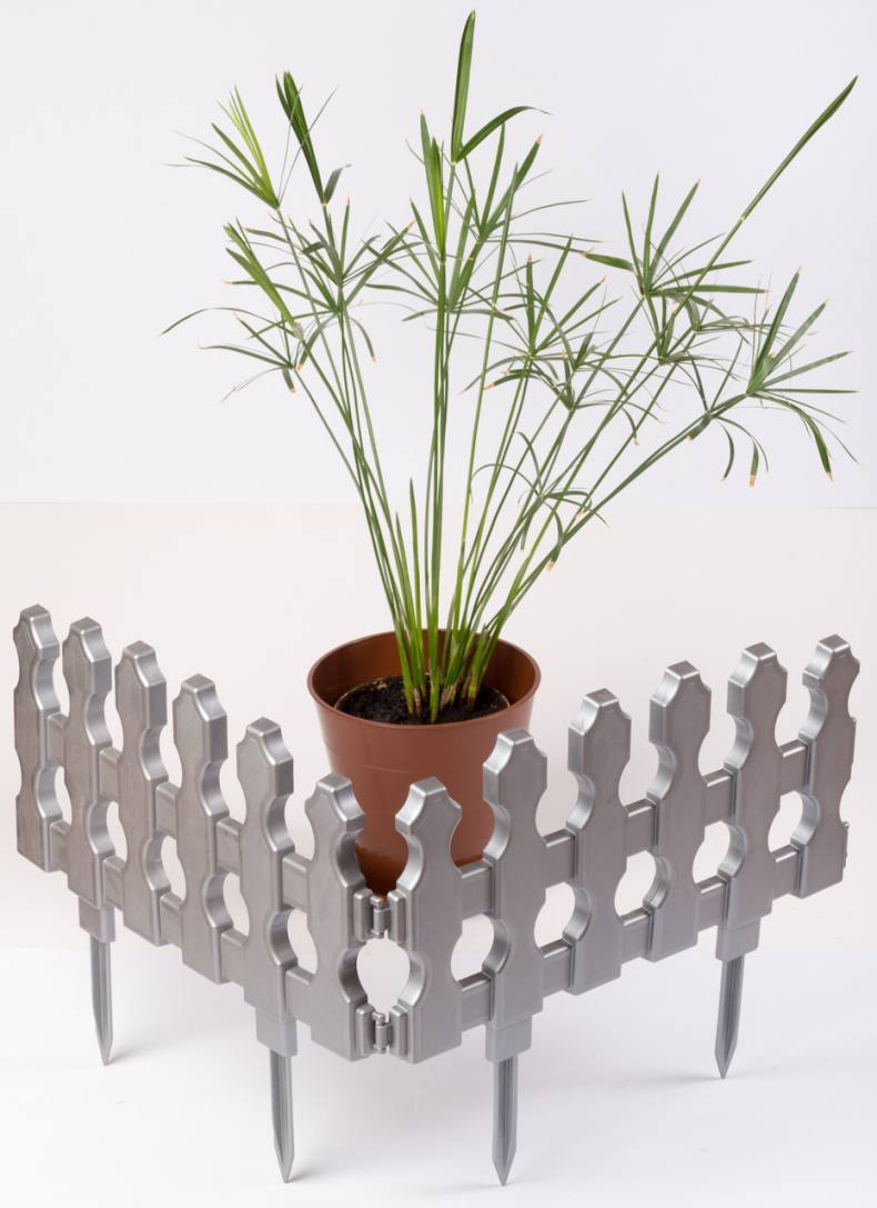 Небольшие декоративные заборы не нуждаются в сложных запасных частях. Они соединяются между собой с помощью специальных пазов и устанавливаются на грунте на имеющиеся острые ножки.