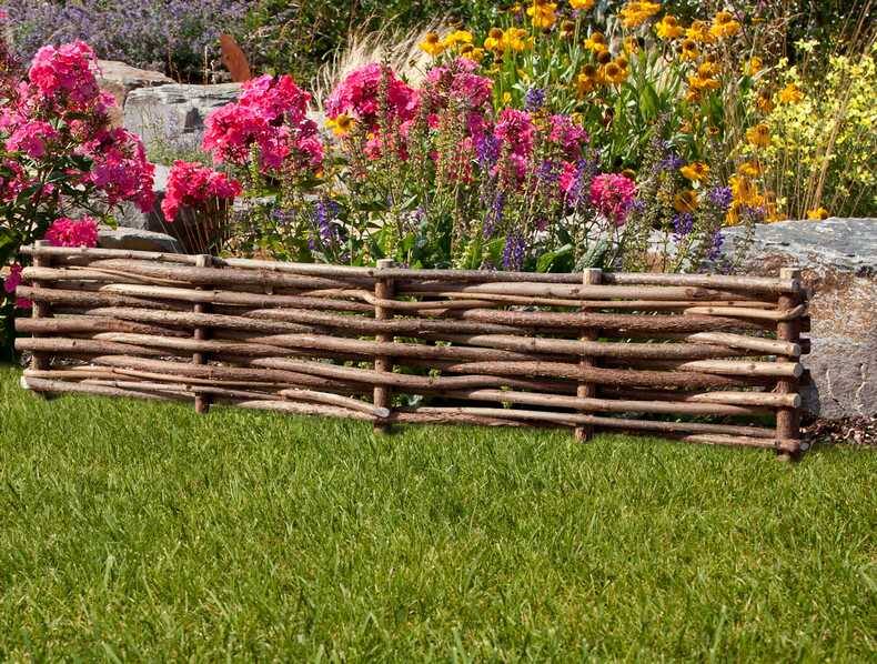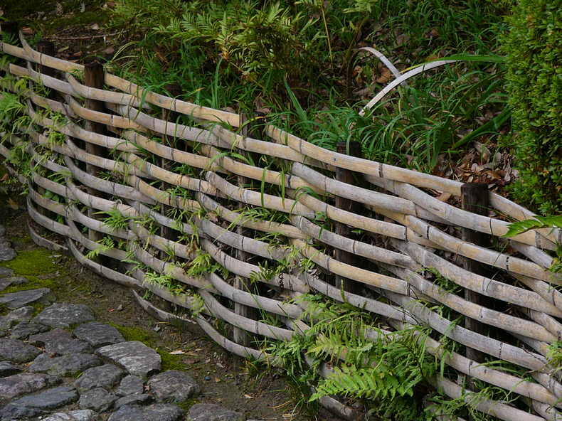 Плетень может использоваться для ограждения пруда, чтобы незадачливые гости или забывчивые владельцы не угодили в него. Чтобы к плетню не подходили близко домашние животные, перед ним можно выложить декоративные камни.