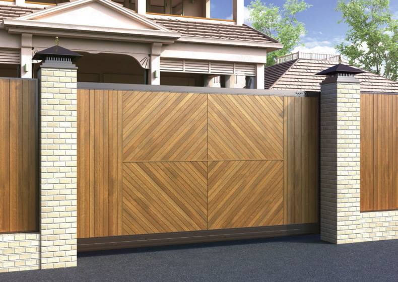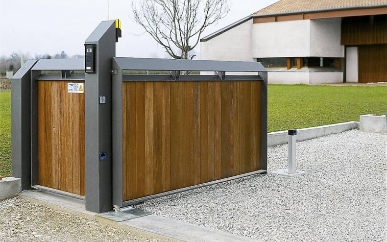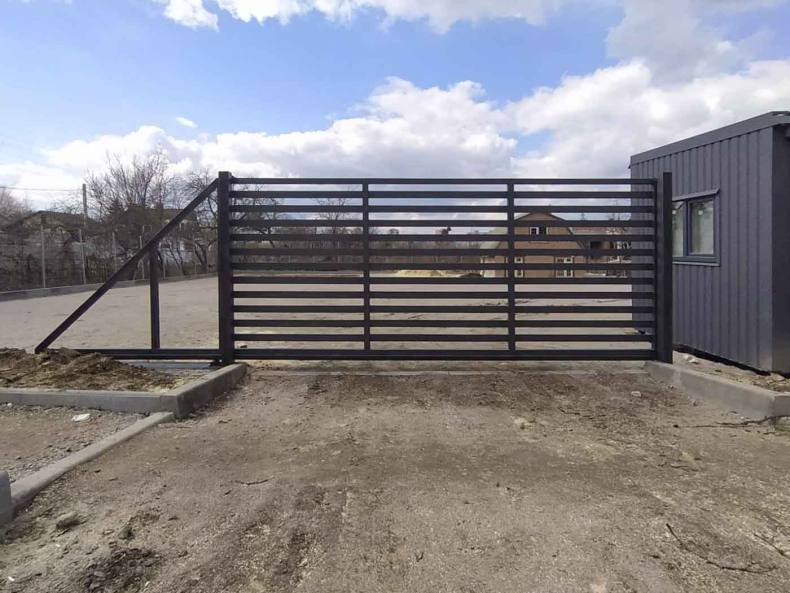 Обычно это ворота, которые перемещаются на роликах прямо по линейной направляющей, построенной на земле с учетом входа.