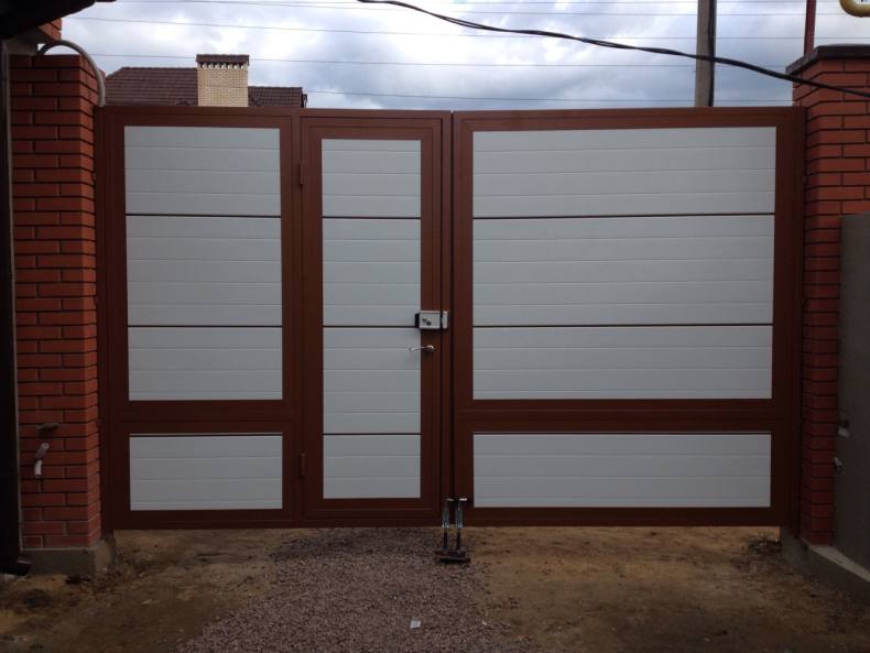 Распашные ворота (135 фото): нюансы изготовления своими руками универсальной конструкции ворот с калиткой из сендвич-панелей