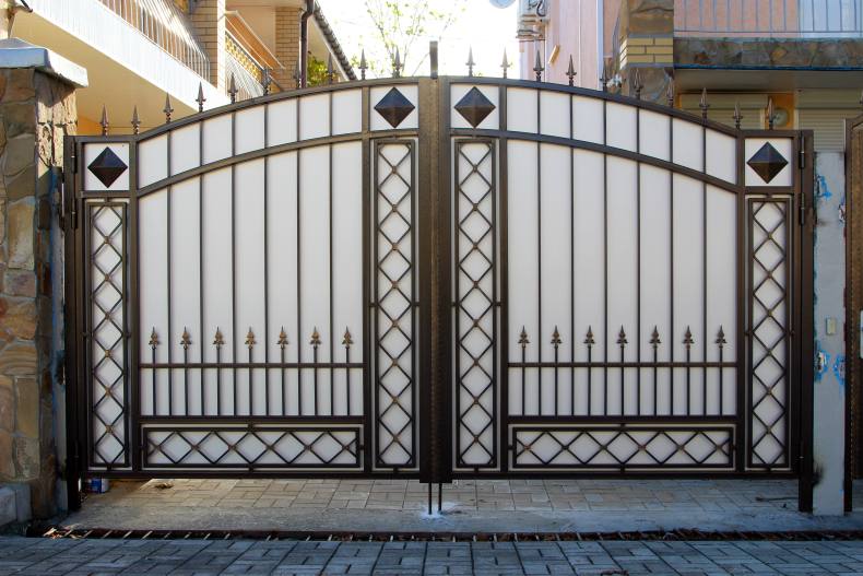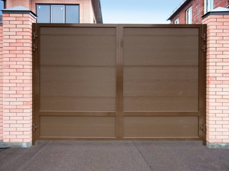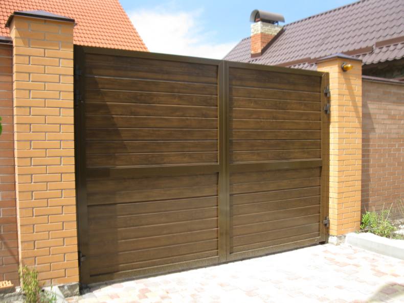 Распашные ворота зачастую предлагаются в различных цветовых вариантах. На выбор предлагается множество мотивов и облицовки различных цветов и узоров, поэтому каждый желающий найдет что-то для себя.
