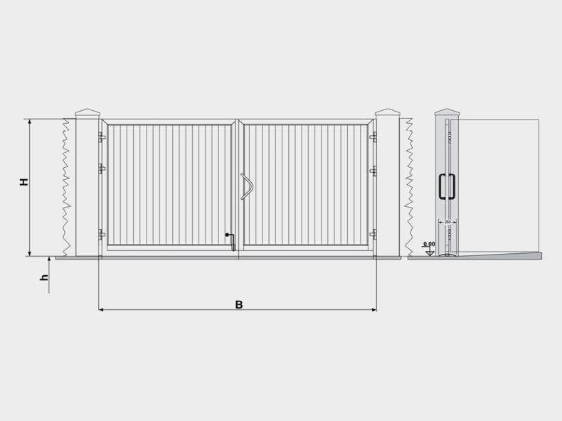 Также возможно самостоятельно спроектировать внешний вид распашных ворот. В зависимости от пожеланий клиента крылья могут быть симметричными или асимметричными.