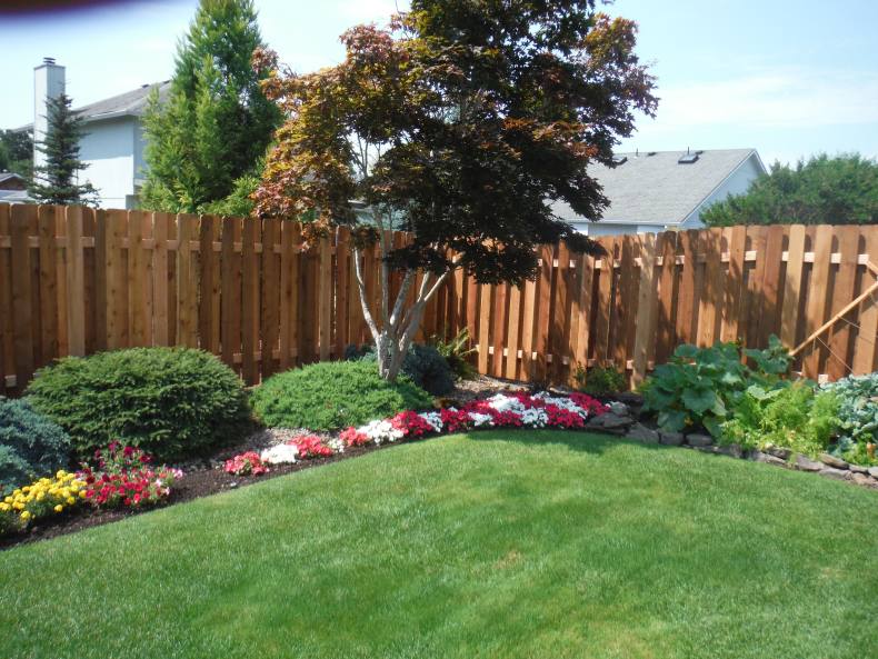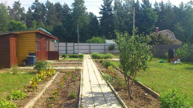 - Высокие деревья сажаются с отступом в три метра, со средней высотой допускается высаживать, отступив два метра. Один метр установлен для ягодных и декоративных кустов. Цветники и клумбы в нормах не предусмотрены;