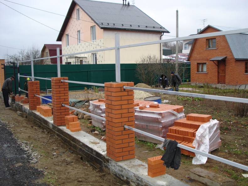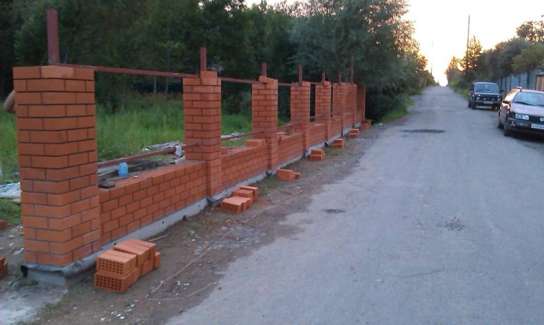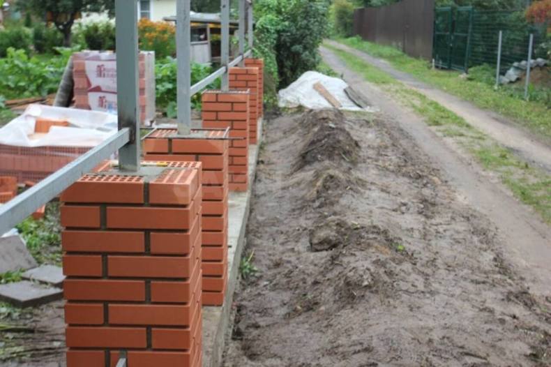 Для установки столбов забора готовят густой раствор. Если планируемый забор будет из кирпичной кладки, то склеивающий материал готовят более жидким. При строительстве ограждения нужно учитывать все особенности приготовления раствора для заливки.