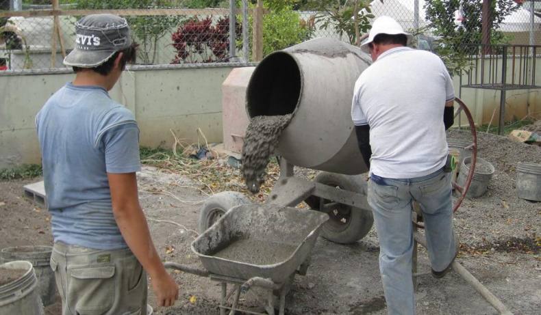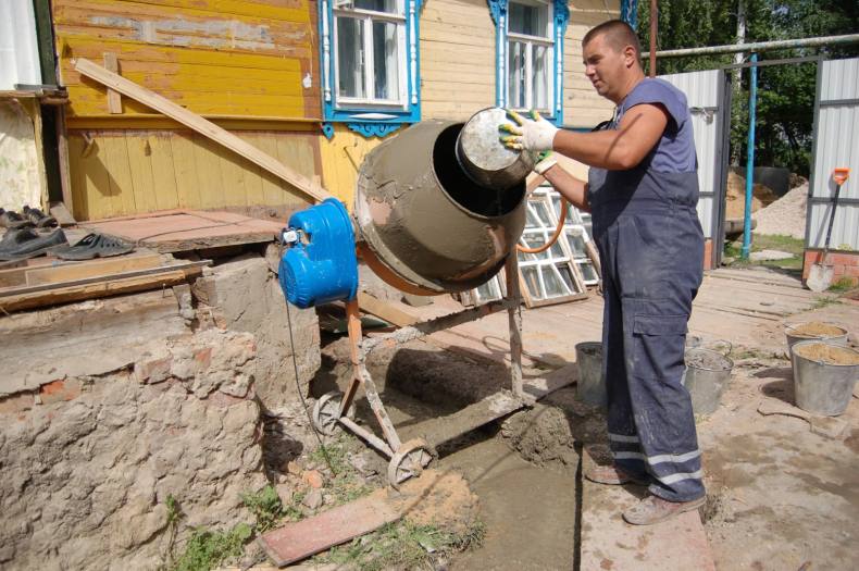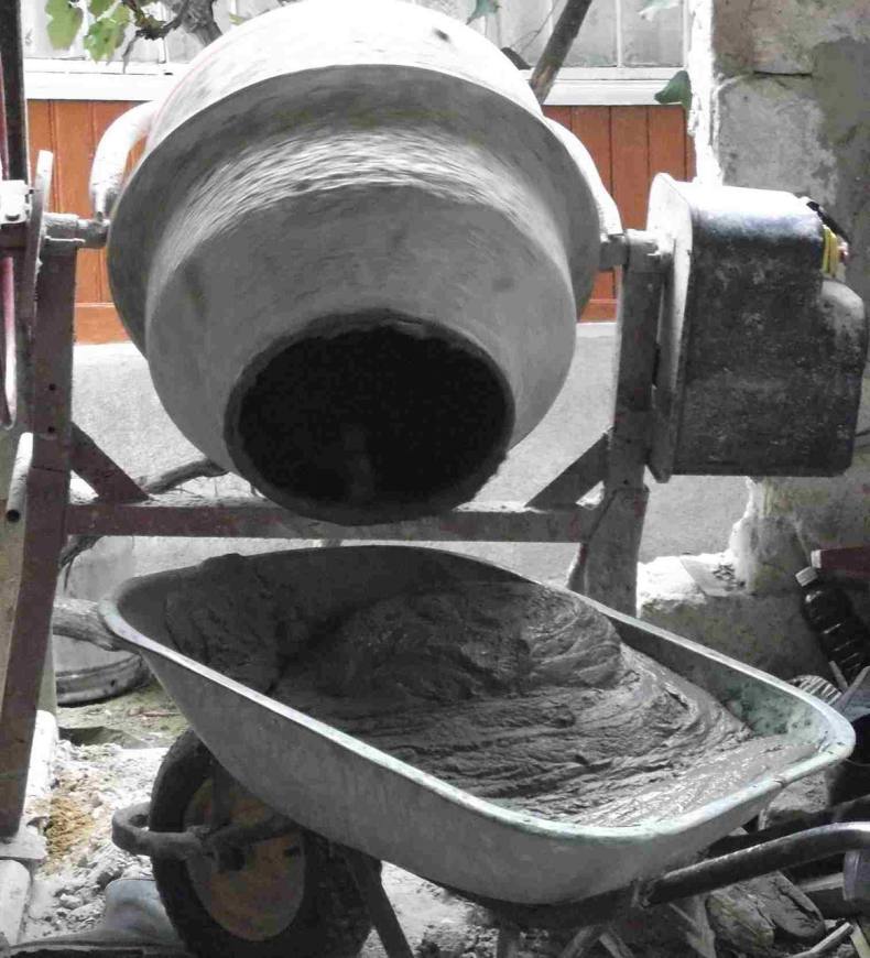 При наличии бетономешалки все легко и просто: внутрь насыпаем в нужных пропорциях все компоненты бетонной смеси, и через две минуты получаем густой однородный раствор бетона.