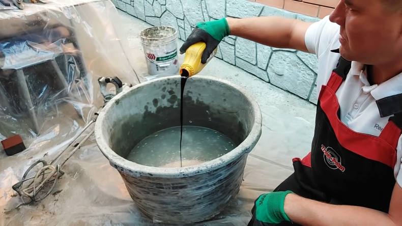 Для приготовления раствора специалисты иногда используют моющие средства, чтобы повысить его эластичность. Самое главное — оно должно без остатка растворяться в воде. Это может быть: