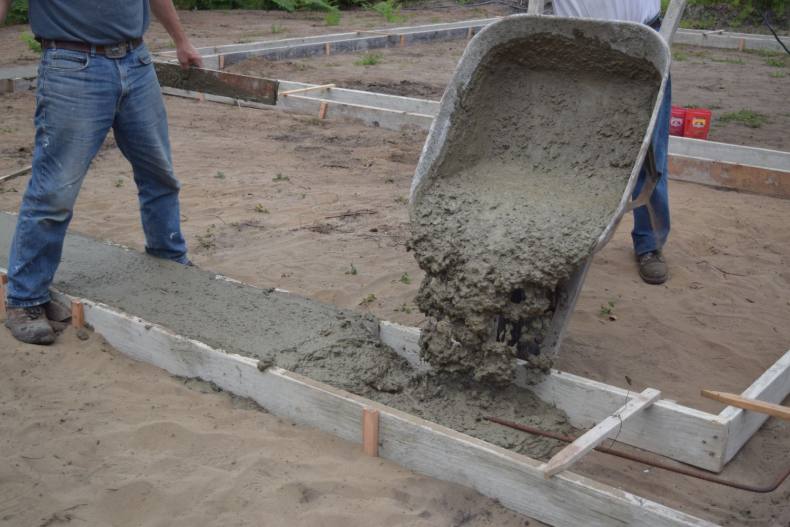 Важно! После добавления воды к цементу, раствор начнет схватываться. В течение часа бетон постепенно затвердеет. Поэтому готовить его следует небольшими порциями. На каждый столб отдельный замес.