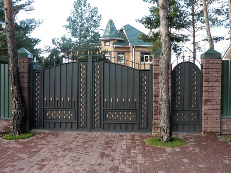 Есть несколько видов ворот. Они бывают распашные, откатные, подъемные и роллетные.