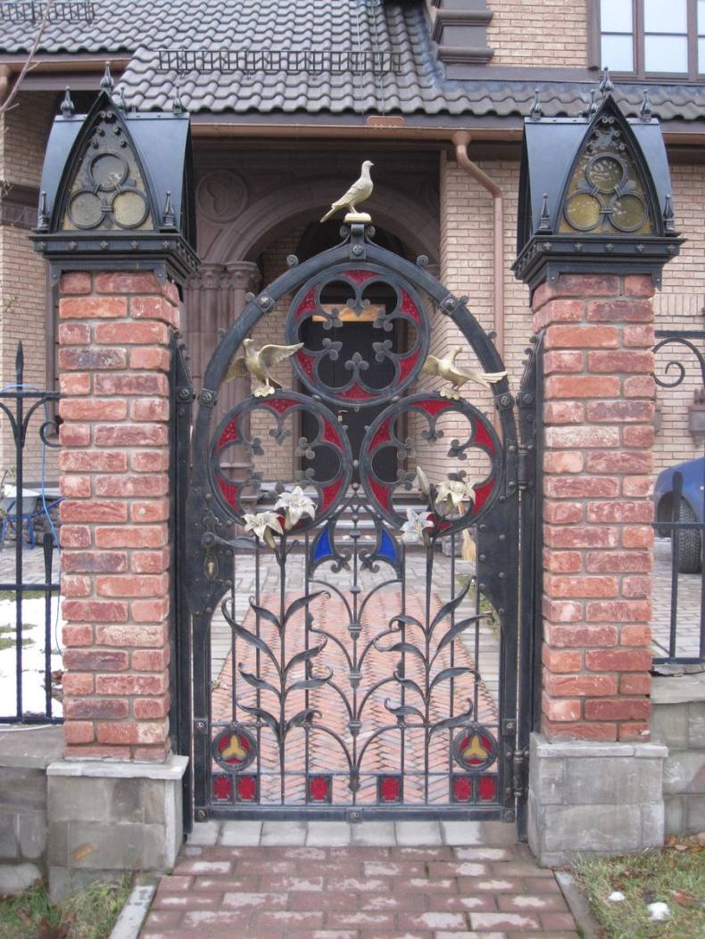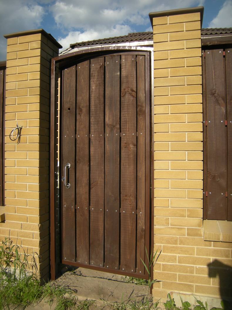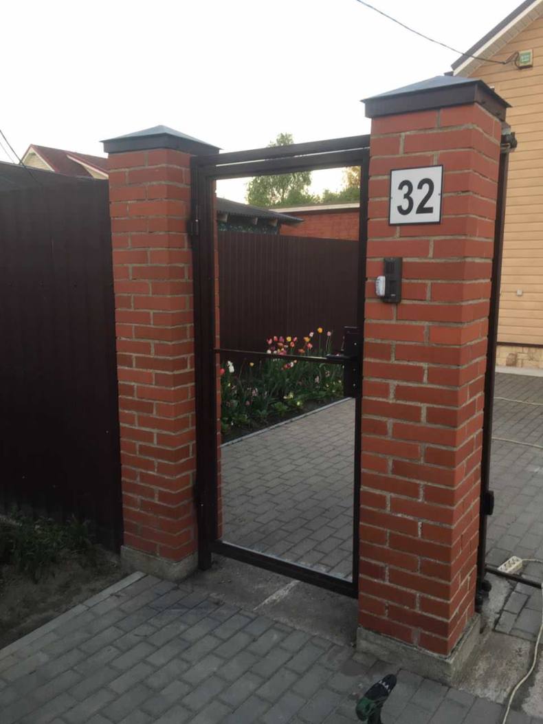 Торец кирпичных опор в большинство случаев делают в полтора кирпича. Если забор из кирпича, то ширина калиток не должна превышать 90-95 см. Иногда бывает так, что в доме проживает инвалид-колясочник и соответственно размер калитку надо сделать под эту потребность.
