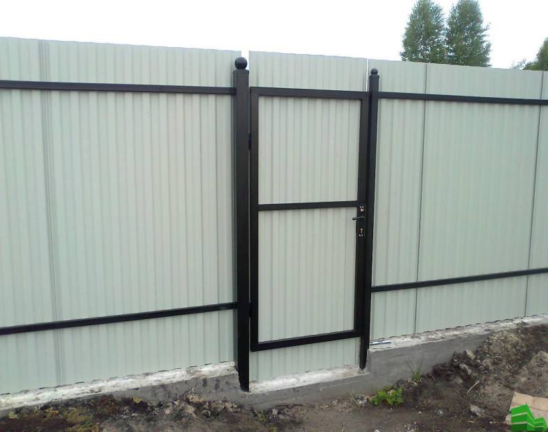 Если сделать калитку из профлиста, то надо учесть стандартные размеры. Согласно стандарту ширина двери не должна превышать более 1-метра.