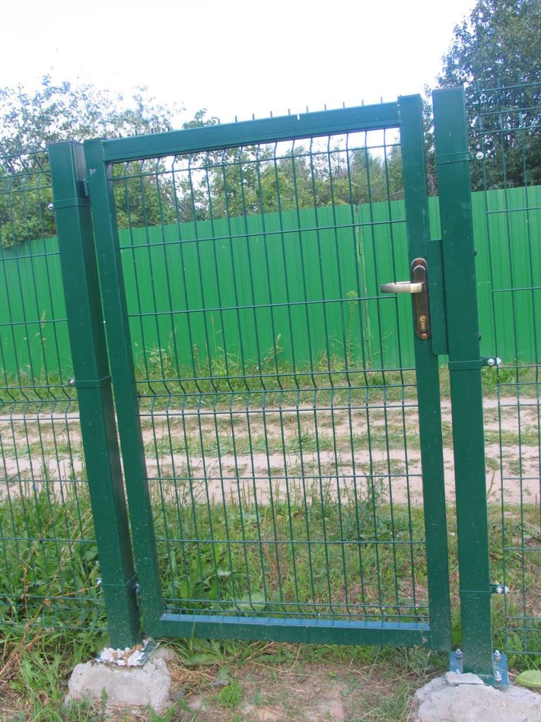 Если ограда дома или дачи сделано из сетки, тогда ширину калитку из сетки выполняют размером не более 80-90 см.