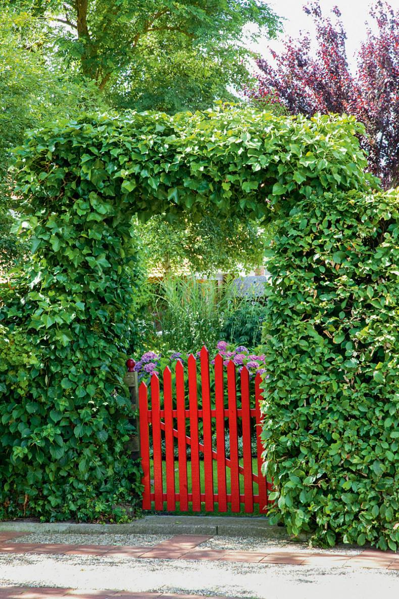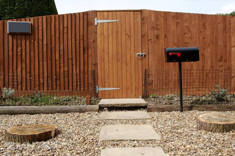 Нижняя часть входной двери (калитки), должна быть выше уровня земли, а верхняя часть чуть ниже забора.