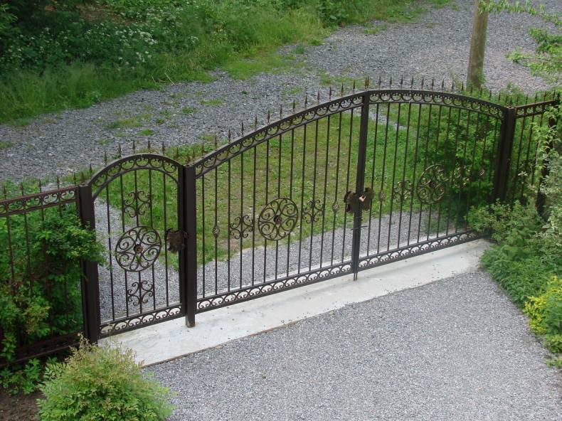 - Распашные-Согласно названию, этот вид открывается в сторону и поворачивается на петлях. Оно требует больше пространства, которое создает неудобства. Например:ближе к проему нельзя сажать деревья, при открытии створки мешает проходу. Но этот вид очень популярен в народе, поскольку оно доступно по стоимости и устанавливается своими руками.