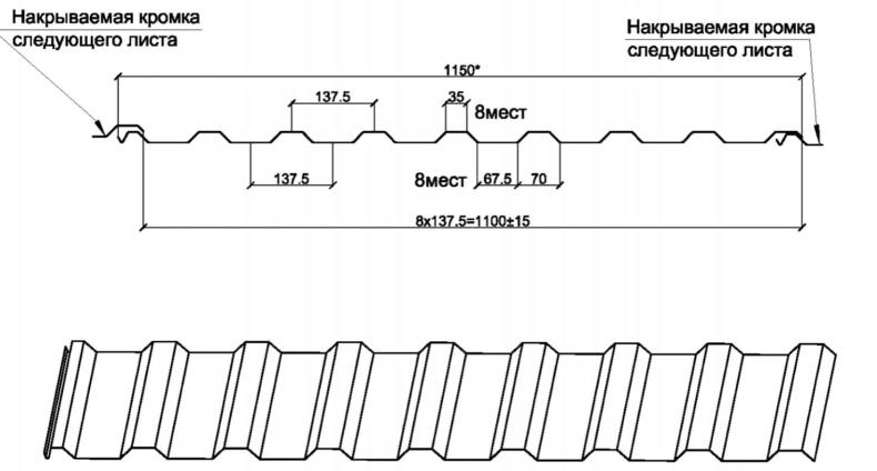 За маркировкой идут следующие обозначения в виде цифр. По ним можно понять диаметр полотна. Например, профлист «С 15-1115-0,4».