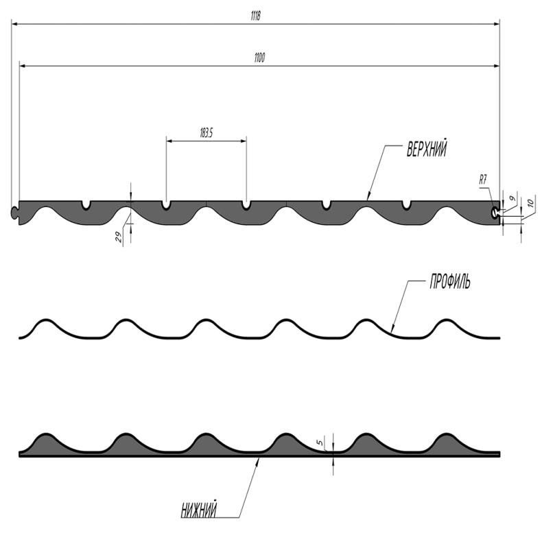 - Волна шириной 11,4 см, а глубиной 15 мм.