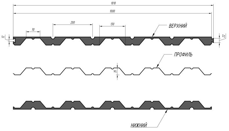 И последний профнастил, используемый в качестве ограждения принадлежит маркировке НС 35. Имеет толщину 0,7-0,9 мм.