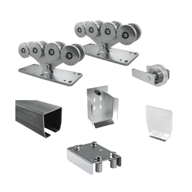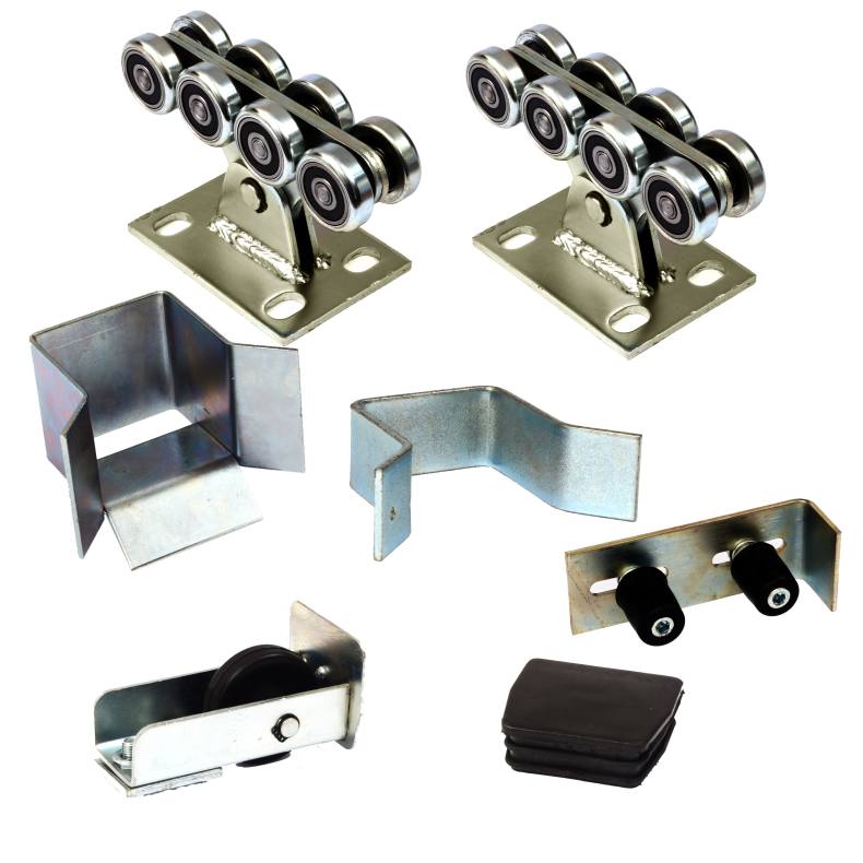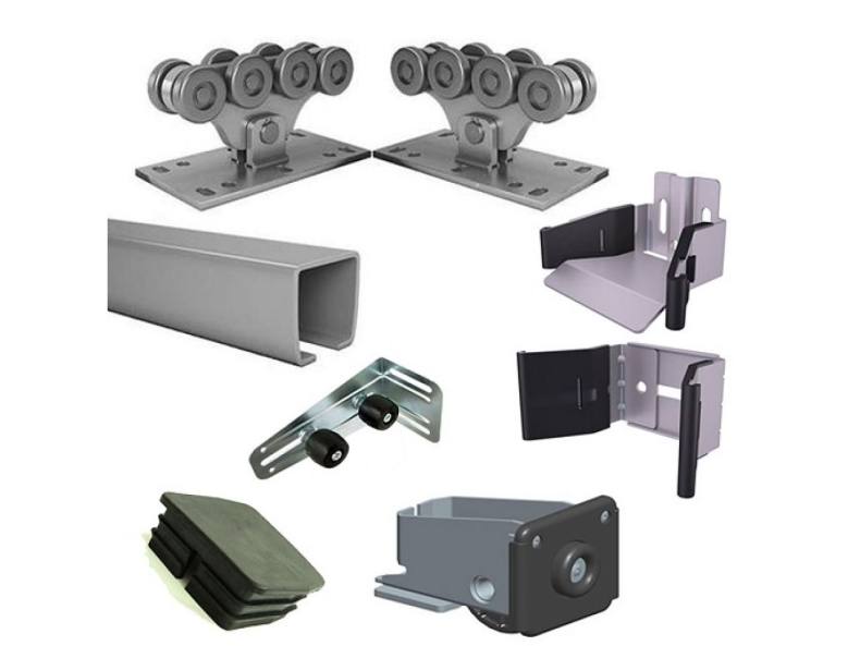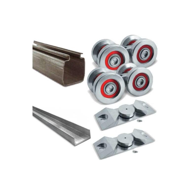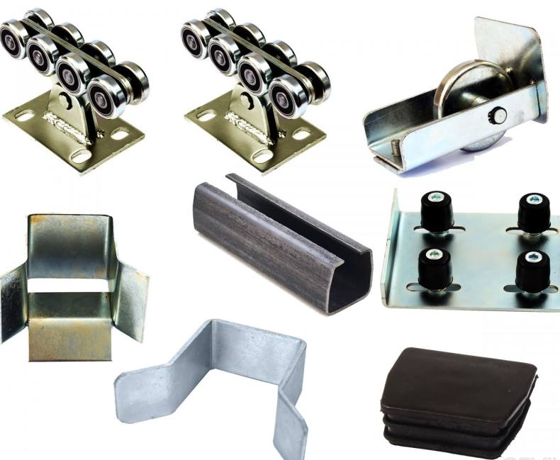 Ролики представляют собой элементы для передвижения откатных ворот. Они включают в себя следующий набор элементов. Это верхние и концевые ролики, стальной рейс, улавливатели, заглушки и опорные ролики.