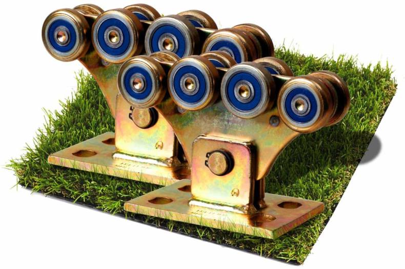 Важно! Откатные ворота не могут работать без роликовых опорных кареток. Их основой является стальная плита, к которой прикрепляются прочные подшипники.