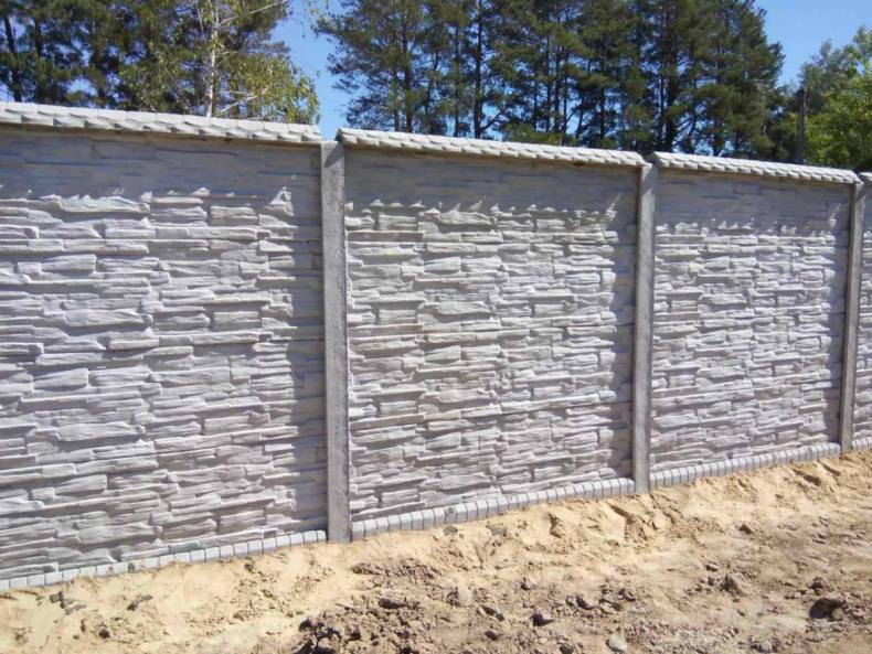 Особого внимания заслуживает бетонный забор из готовых пролетов. На место сборки они доставляются в готовом виде — чаще всего они состоят из нескольких горизонтальных элементов, а при их производстве используются цемент, песок, добавки для бетона и арматура, благодаря чему они приобретают большую прочность.