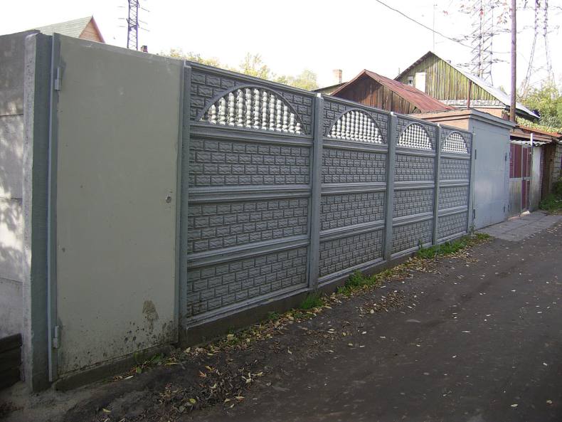 Но если это сборный бетонный забор, то визуально возникает ощущение легкости и прозрачности, ведь можно поставить забор с большим количеством выемок.