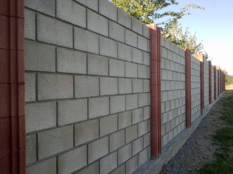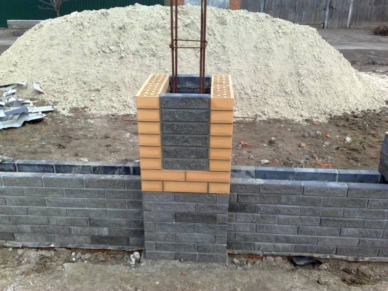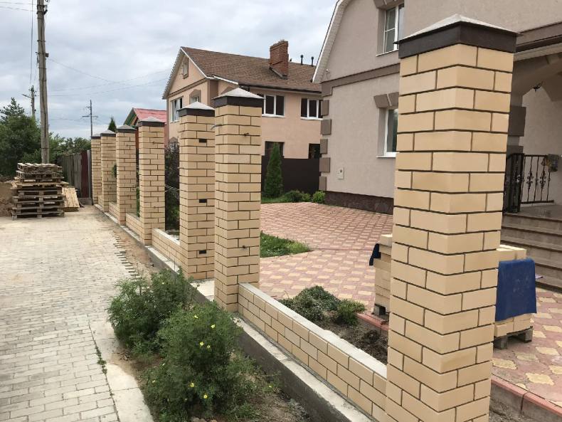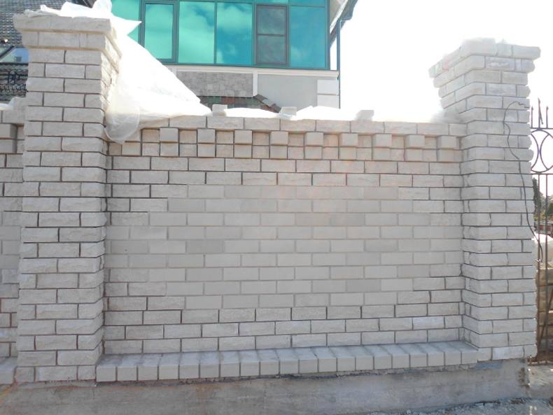 - Если нужно сделать забор недорогим и красивым, в качестве основы для столбов можно использовать такую разновидность кирпича как строительный камень.