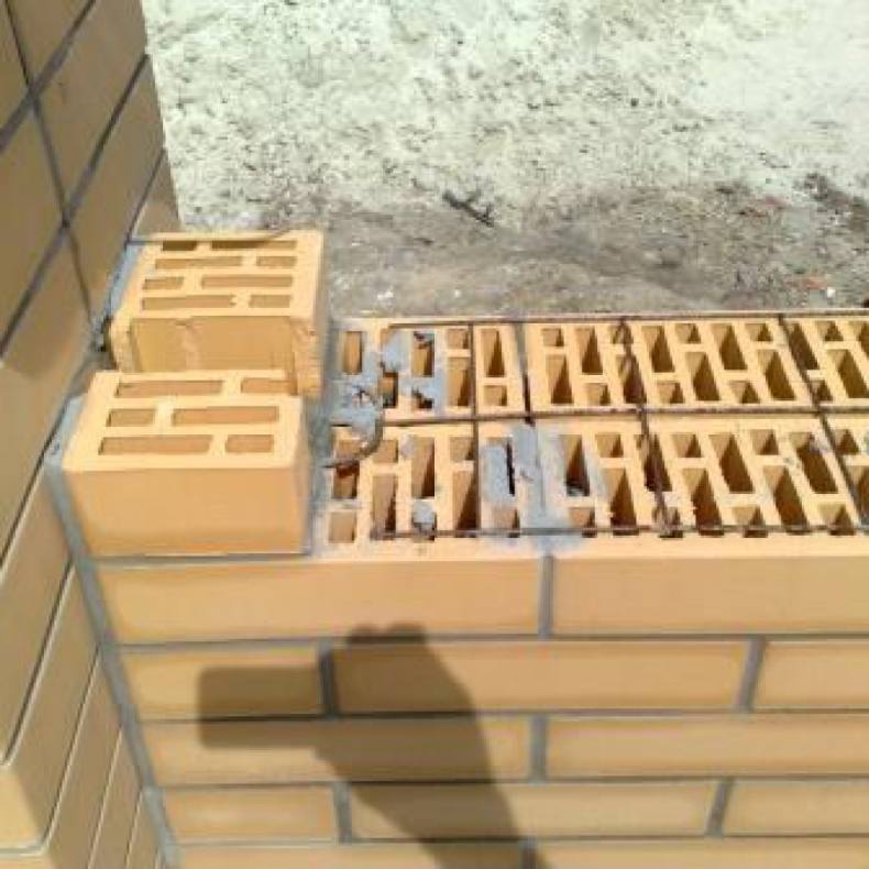 Чтобы уменьшить количество необходимого кирпича можно в центр столба установить армированный стержень.