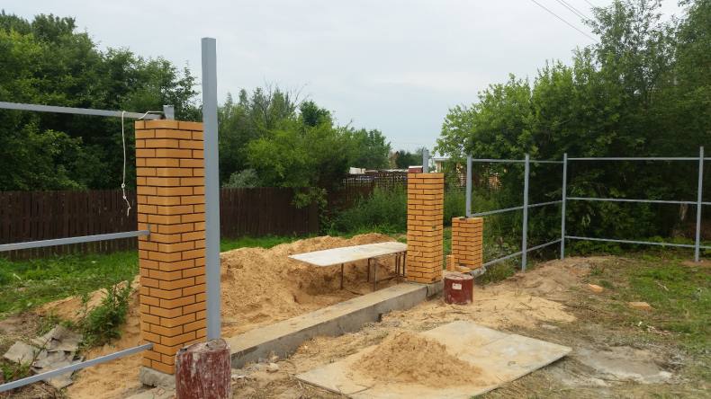 Сооружение заграждения со столбами из кирпича довольно затратное занятие, так как требует затрат большого количества материала.