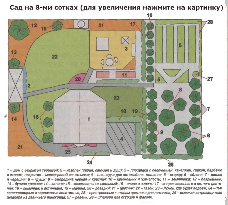 Планировке сада следует уделить особенное внимание. Важно продумать расположение зелёных насаждений таким образом, чтобы они не мешали и не отбрасывали тень на соседский участок, но в то же время хорошо росли, развивались и плодоносили.