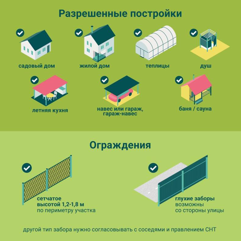 - Планировка и застройка территорий садоводческих объединений граждан, здания и сооружения (СНиП 30-02-97). Пакет нормативных документов, определяющих расположение объектов на земельном участке относительно его границ и размера объектов, а также относительно общей площади земельного надела.