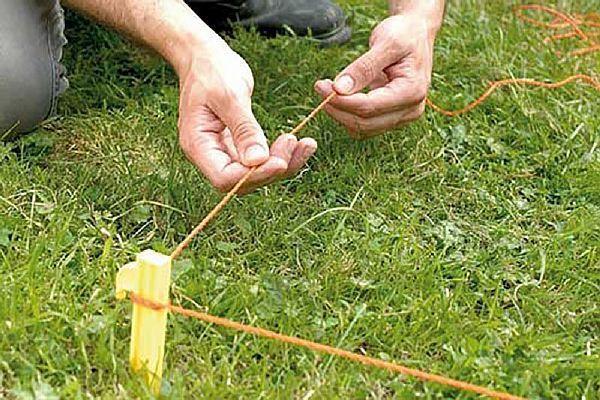 Расстояние по сторонам от колышков разделить на одинаковые отрезки, определяющие дистанцию между ними, вбить колышки. В зависимости от конструкции ограды оно должно составлять 1,8-2,3 метра.