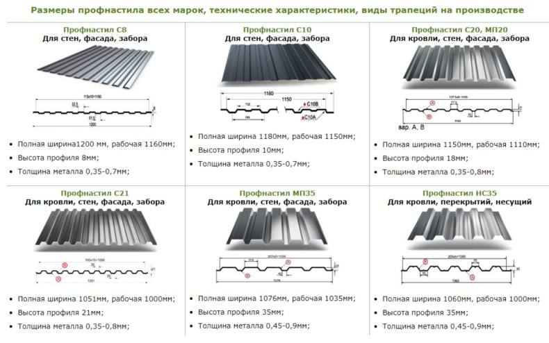 - Стеновой лист обозначается «С 10, С 21 или С 20», используется для ограждения и стен. Цифры в маркировке обозначают высоту, например, «С 10», где 10 мм является высотой;