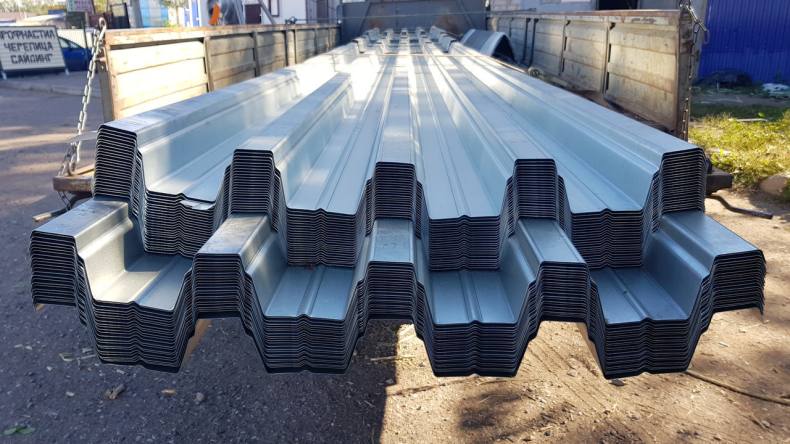 - Сам же материал для профлиста делают из оцинкованной стали методом холодного металлопроката. А затем для получения формы профиля (волны) пропускается через станок профилегибочного вида. Так получается профлист с ребрами жесткости.