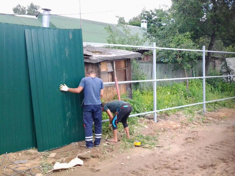 Фото строительства забора из профнастила