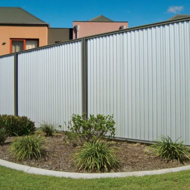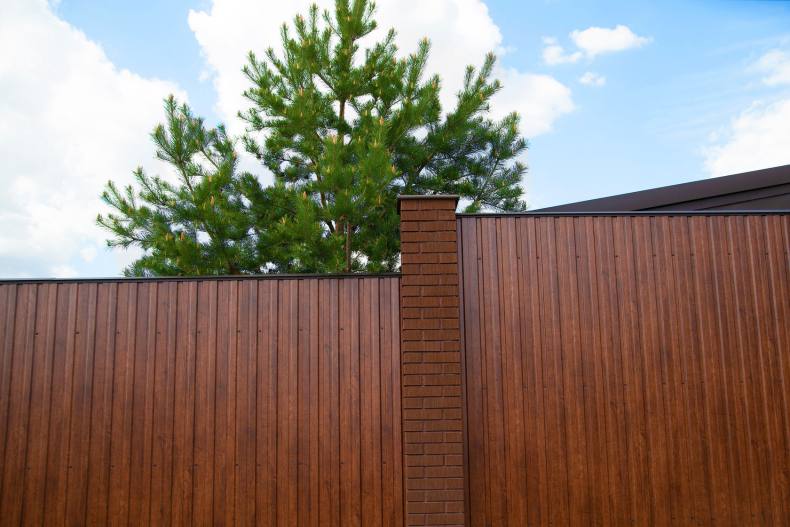 Самый популярный материал для установки заборов сегодня — это профнастил. Его можно встретить как на дачах, так и возле частных коттеджей. Некоторые устанавливают профнастил так, чтобы цветная сторона была внутри, а выпуклости — снаружи.
