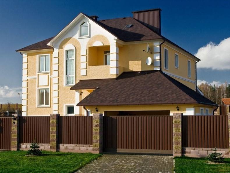 - Коричневый. Теплый оттенок, который прекрасно гармонирует по цвету с почти любой лицевой частью дома.