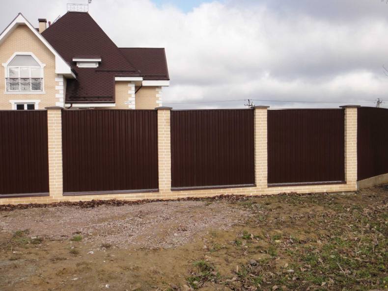 Ограда и фасад имеют одинаковый цвет. В данном случае дом с ограждением выглядят как единое целое, но такой вариант прост и выглядит непримечательно.