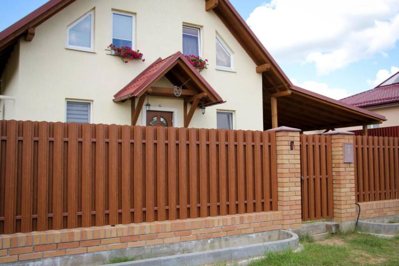 Если забор деревянный, то его цвет можно обновить с помощью периодической подкраски. А вот цвет ограждения из кирпича, либо металла обновить гораздо сложнее.